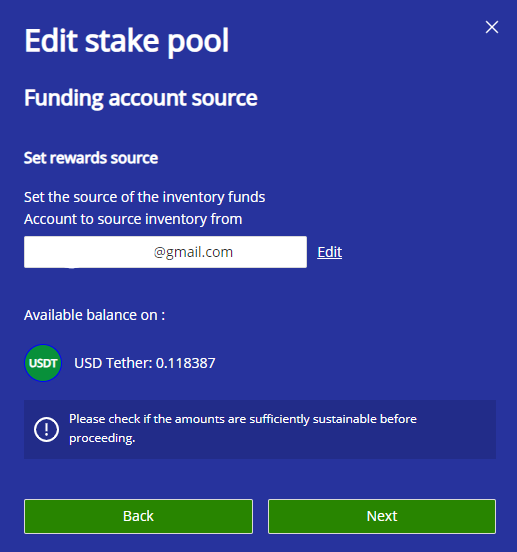 * Here, the operator also chooses a funding source. This is simply an account where rewards will be taken from&#x20;