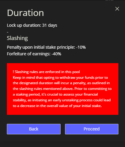 As the user goes through the process of the staking, they will be informed of the slashing rules, and given a message explaining what Slashing entails.