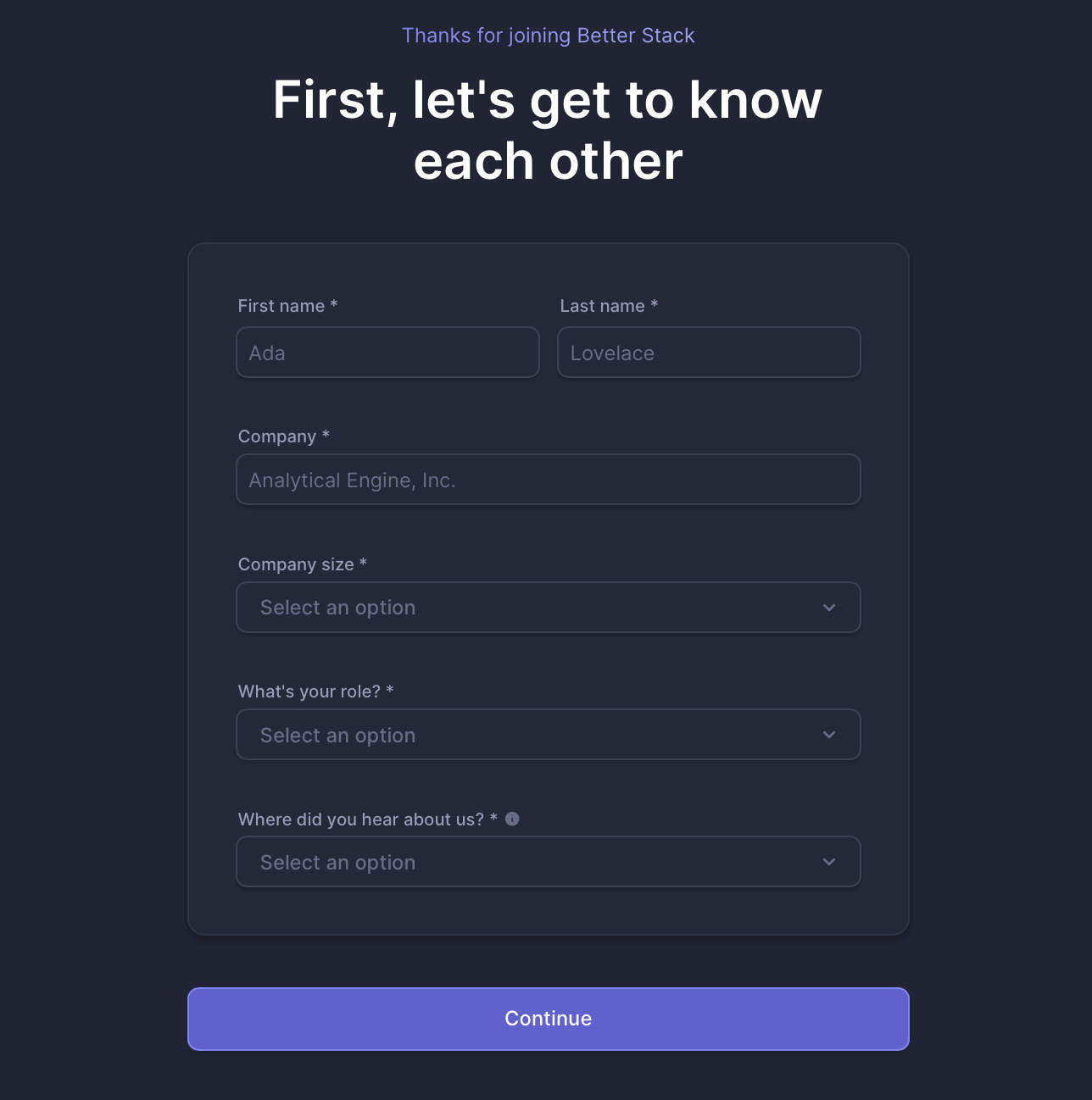 You can sign up through [this link](https://betterstack.com/users/sign-up). Please go through the signup process completely.